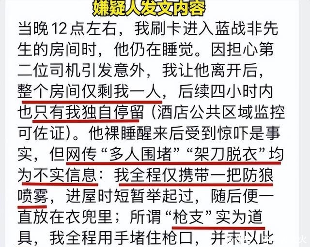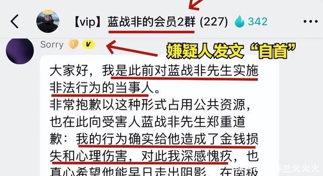 疑凶手发声,过程细思极日,在蓝战非的一个名为蓝战非的会群的社交媒体群组中,一位网名为Sorry的网友发布长篇声明,自称就是实施该案的当事人。