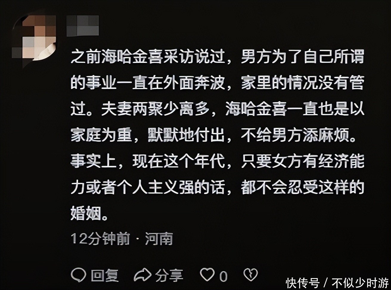 后来在接受采访时,海哈金喜坦言,她与李亚鹏已经很久没有共同生活。她强调这是由于双方工作节奏不同所致,并非感情破裂。可长期分居本就是婚姻危机的重要信号。